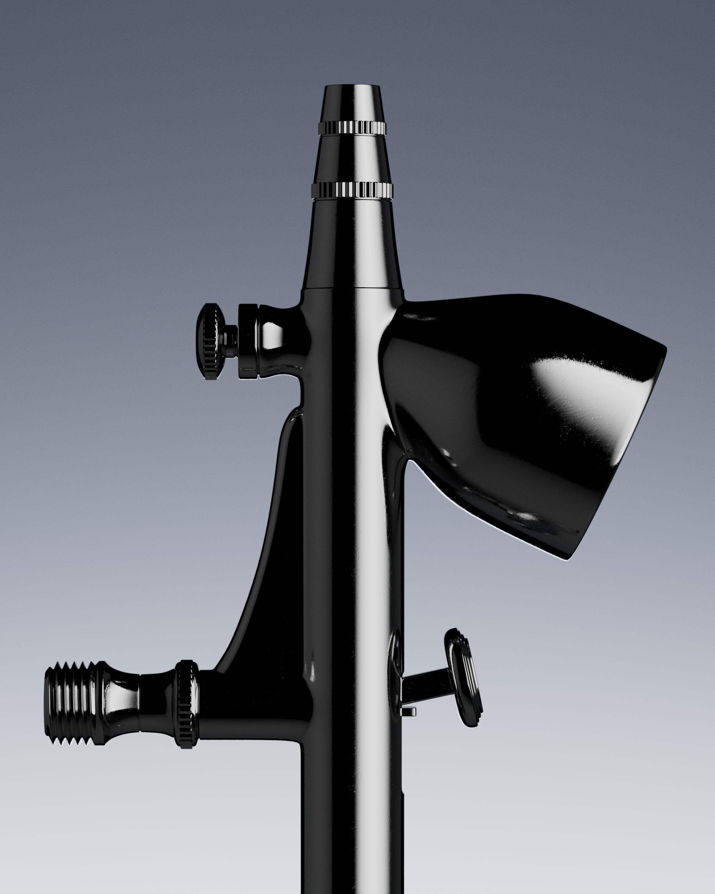 Renderings and video for Kindohm's record 'GET' + additional renders exploring shape and light. Modeled after an Iwata airbrush using photo refrences. Video was made by syncing the snare and kick to individual lights to light up the airbrush as it rotates.