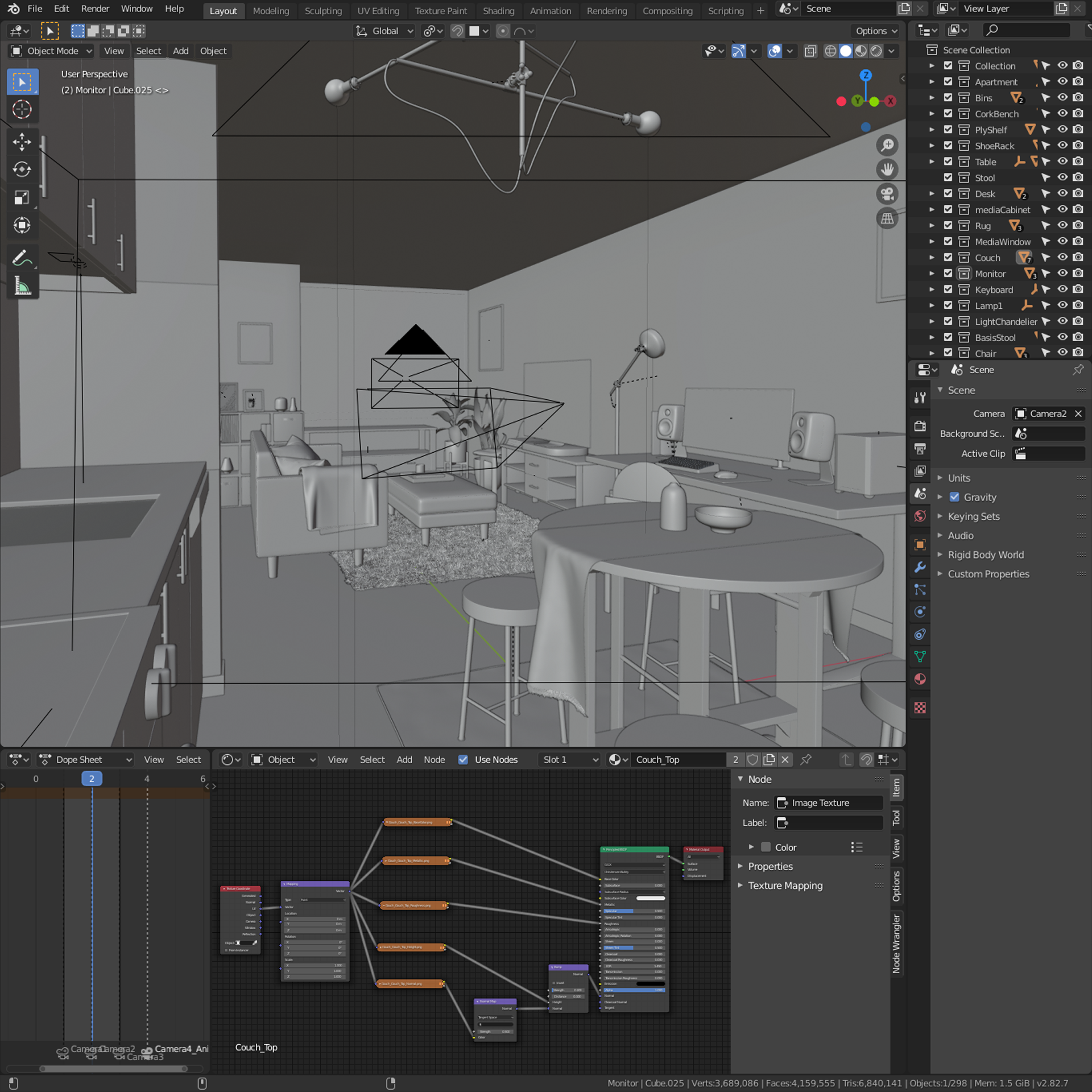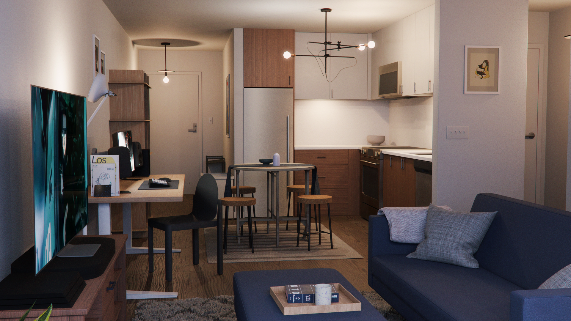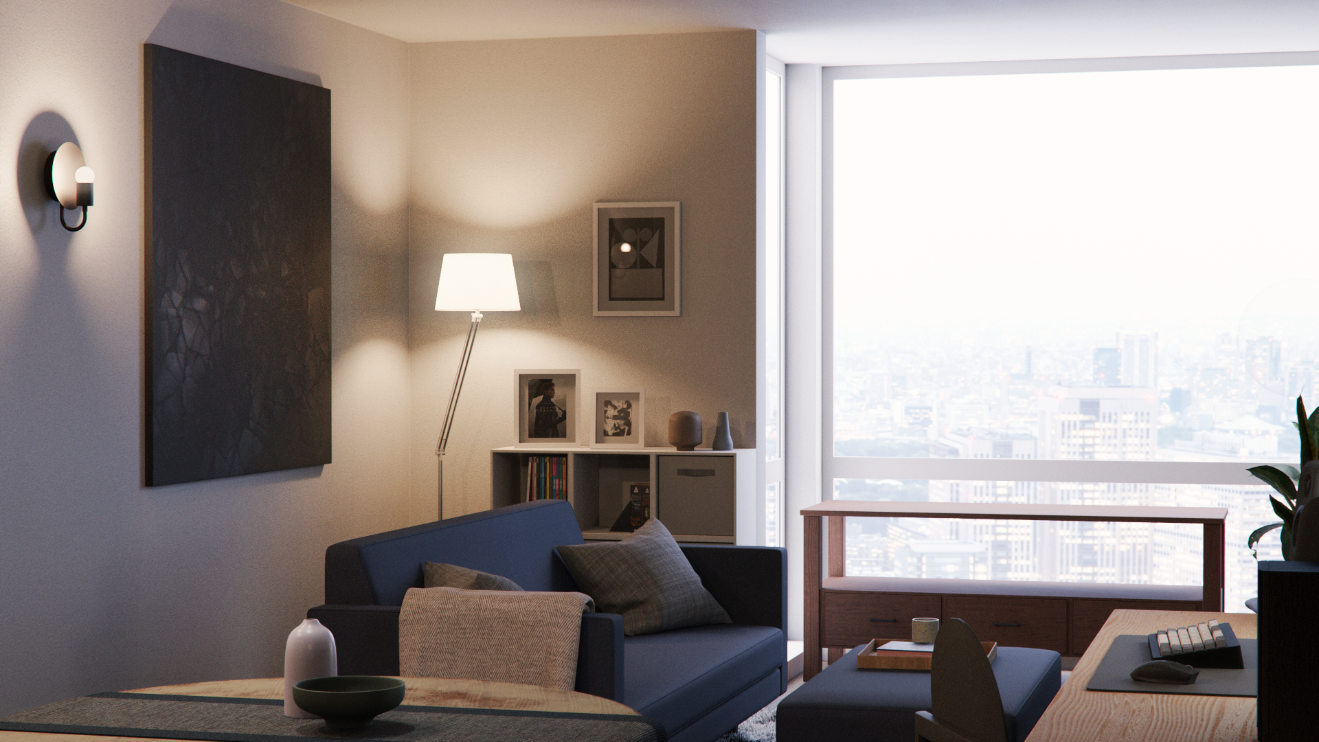 Interior rendering based off a real apartment. Everything was modeled by me, apart from the ceiling lamps, keyboard, and mouse. All objects were textured procedurally in Substance Designer and Painter. Final Shots were rendered with Cycles.