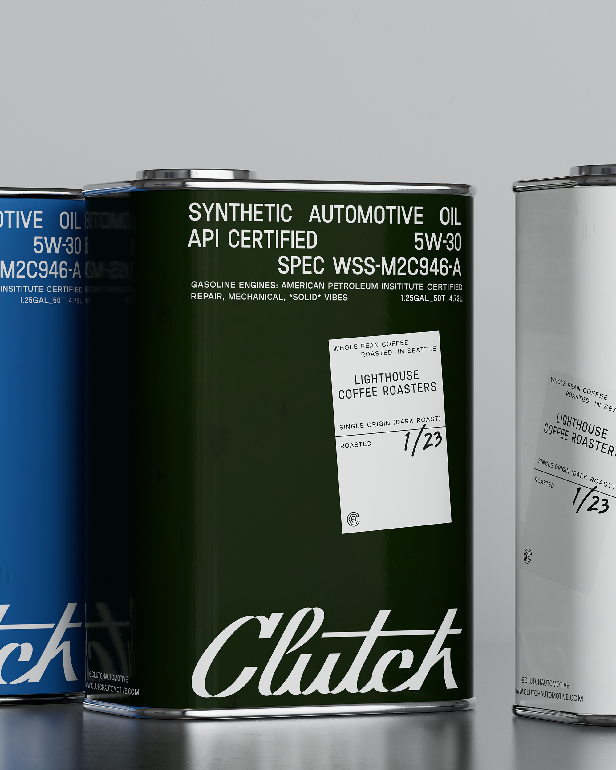 Rendering for Clutch Automotive’s client loyalty gifts - each intended to be used as whole bean coffee packaging produced in collaboration with a roasting partner.