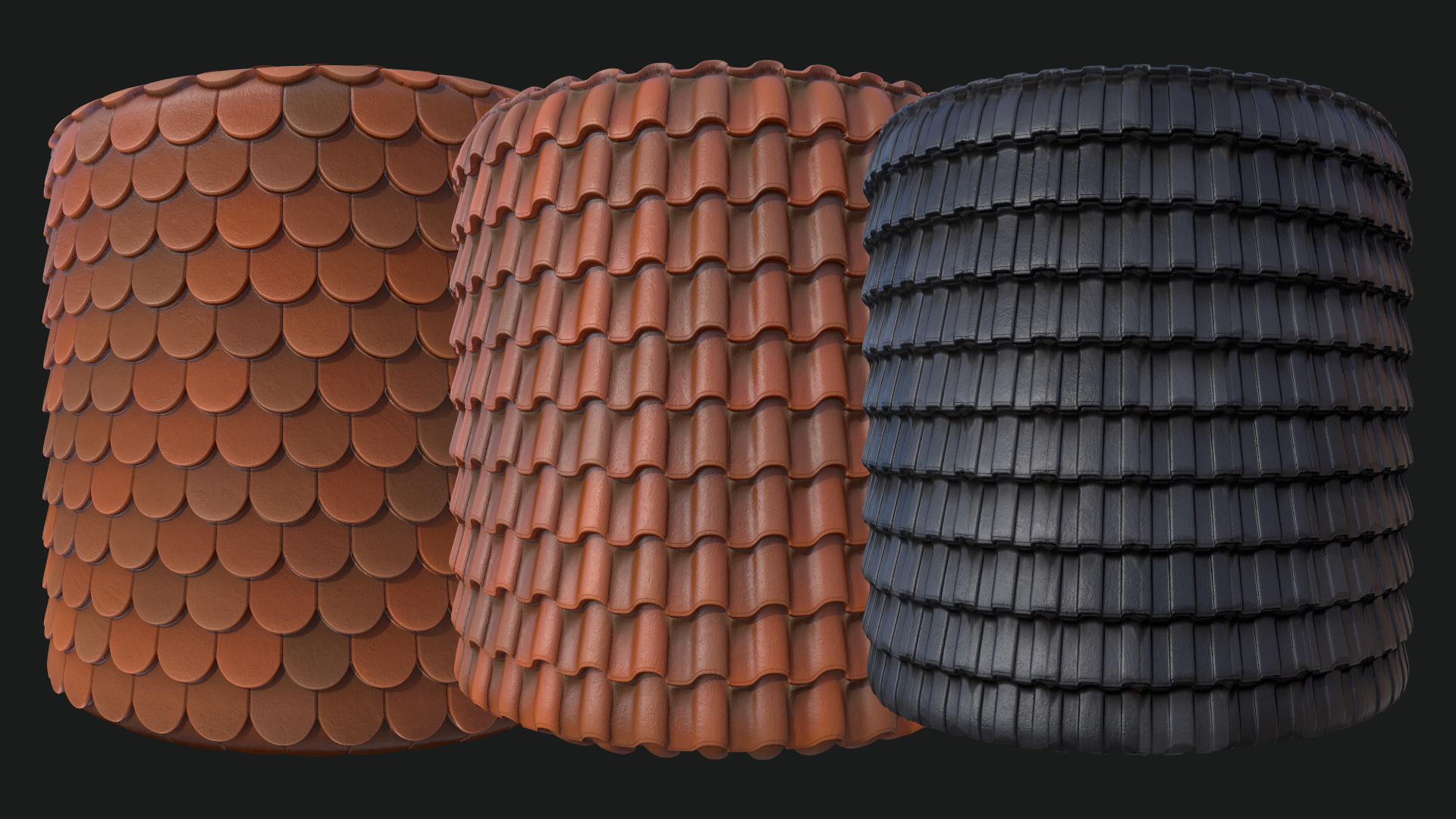 Roof tile generator. 100% Substance Designer, rendered in Marmoset.
